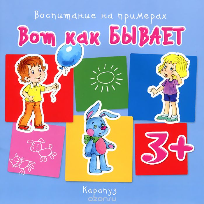 Наш ответ таков - правила (неизменные), объяснения (понятные), примеры (прежде всего собственный), "разбор полётов" (желательно чужих)! И нет ничего эффективнее, чем посмотреть на себя со стороны. Мы даем вашему ребенку такую возможность. Если вместо маленькой картинки в тексте вы будете произносить имя вашего малыша (светловолосая головка) и имя его брата, сестры или друга (темноволосая головка), то у вас получатся рассказы именно и только о вашем ребенке.