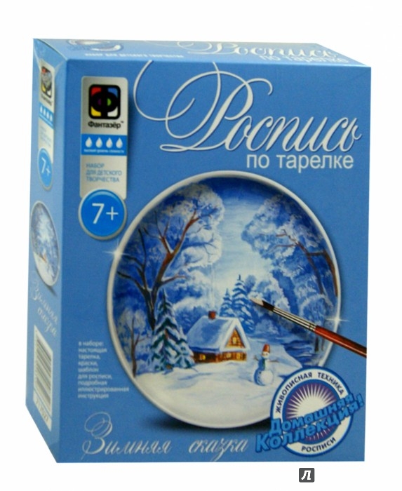 В наборе: тарелка, краски, кисточка, шаблон, копировальная бумага.