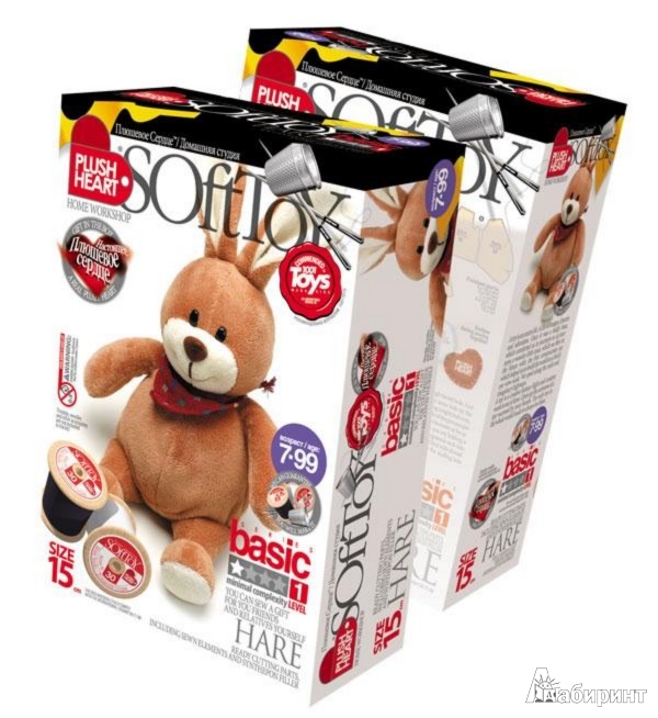 В комплект набора входит: пошитая голова игрушки, лапы, элементы туловища, хвост, синтепоновая набивка, мешочек с пластмассовыми гранулами и "Плюшевое сердце".