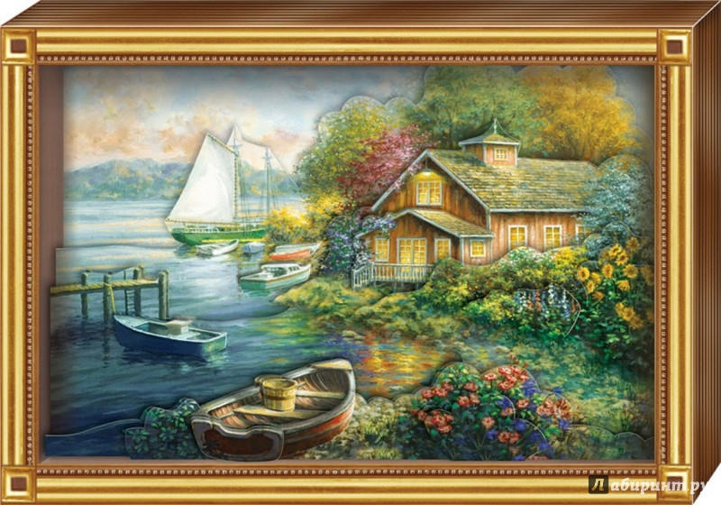 Этот пейзаж, словно заветная мечта: тихое озеро приютило красивый дом и сад с богатыми красками ранней осени, а лодки на нём покачиваются в ожидании романтиков или рыбаков. Эту прекрасную картину дети старше 8 лет могут сделать сами, самостоятельно, а дети старше 5 лет - с помощью взрослых. Ножницы и клей не понадобятся, - ведь наши наборы в технике 3D-аппликации специально созданы таким образом, чтобы ребёнку было удобно и чисто работать. Вместо клея в наборе объёмный двусторонний скотч. С наборами этой серии дети учатся складывать трёхмерное изображение из частей, составляя перспективу. Красочная и глубокая готовая рамка входит в набор,- её не нужно собирать!