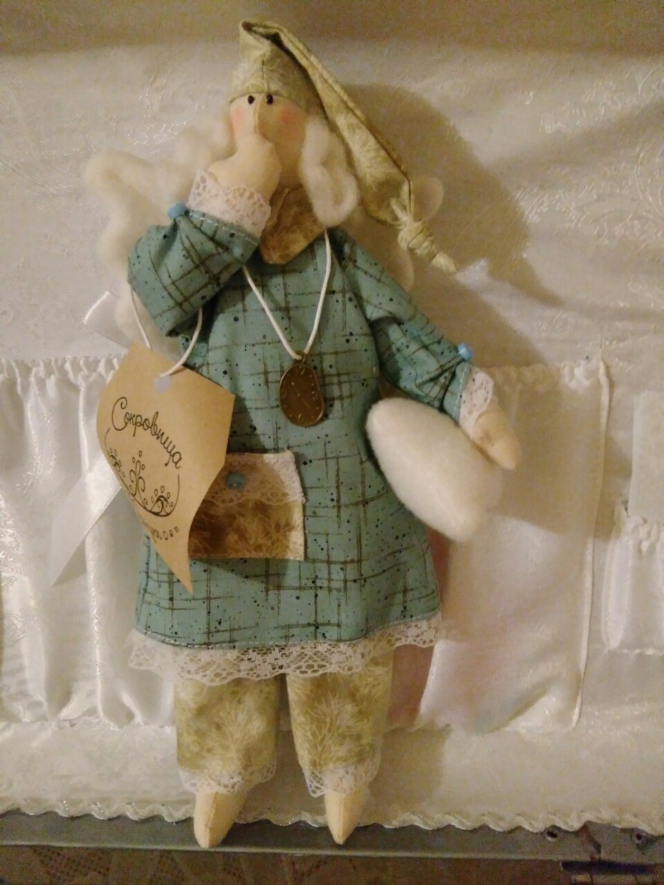 Материалы: хлопок 100%, волосы искусственные, шнур вощёный, подвеска, подвеска металлическая, синтепух