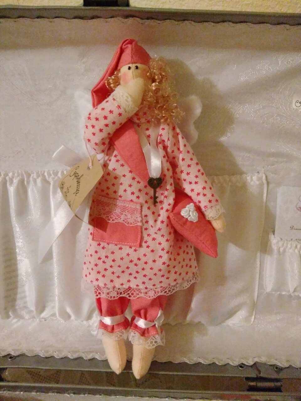Материалы: хлопок 100%, волосы искусственные, шнур вощёный, подвеска, подвеска металлическая, синтепух