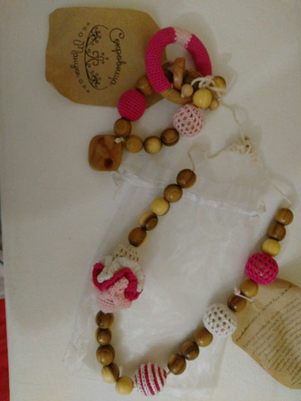 Благодаря целебным свойствам можжевельника, ношение слингобус улучшает самочувствие, стимулирует работу нервной системы, снимает головную боль и лечит бессонницу, улучшает кровообращение и иммунитет. Ребёнок будет с удовольствие перебирать бусинки разного размера и формы, и за счёт этого у него будут развиваться координация движения.