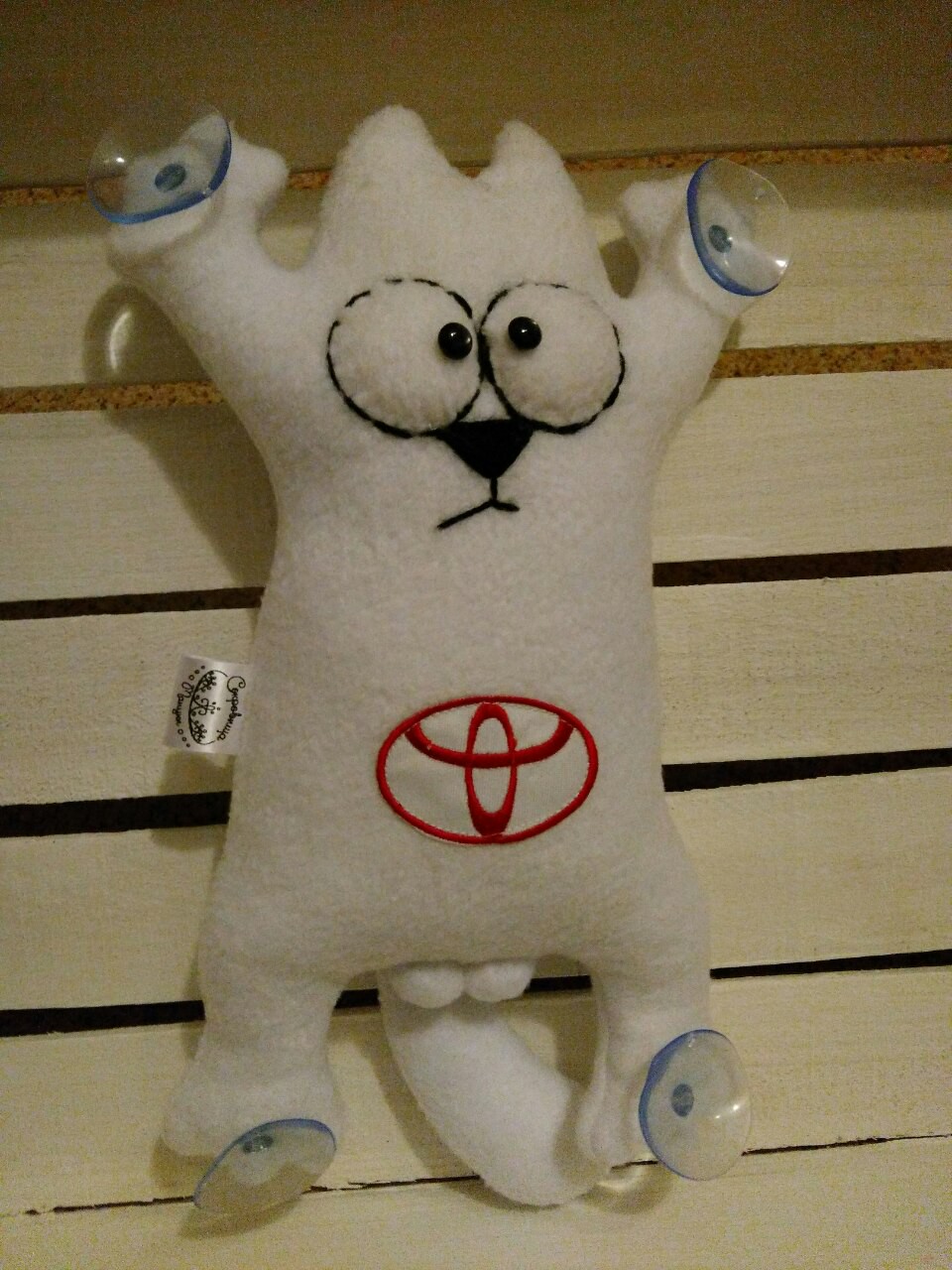 Материалы: флис, синтепух, глазки для игрушек, пряжа, бирка, присоски