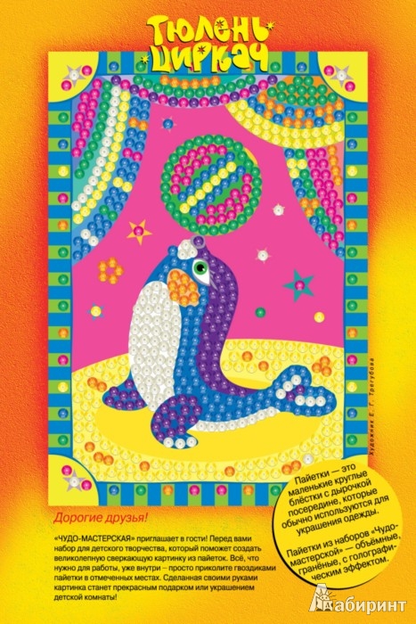 "ЧУДО-МАСТЕРСКАЯ" приглашает в гости! Перед вами набор для детского творчества, который поможет создать " великолепную сверкающую картинку из пайеток. Всё, что нужно для работы, уже внутри - просто приколите гвоздиками пайетки в отмеченных местах. Сделанная своими руками картинка станет прекрасным подарком или украшением детской комнаты!