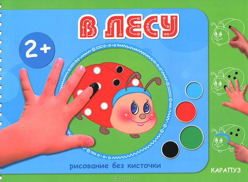 Прежде чем рисовать в книжке с ребенком, просмотрите ее сами. Понятно, что картинки в книжке предназначены для рисования пальчиками. Обратите внимание на пояснительные странички к иллюстрациям. На них расположены:
